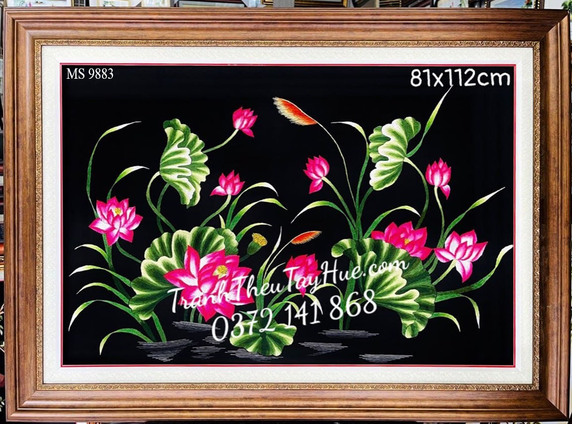 Tranh thêu hoa sen ms 9883