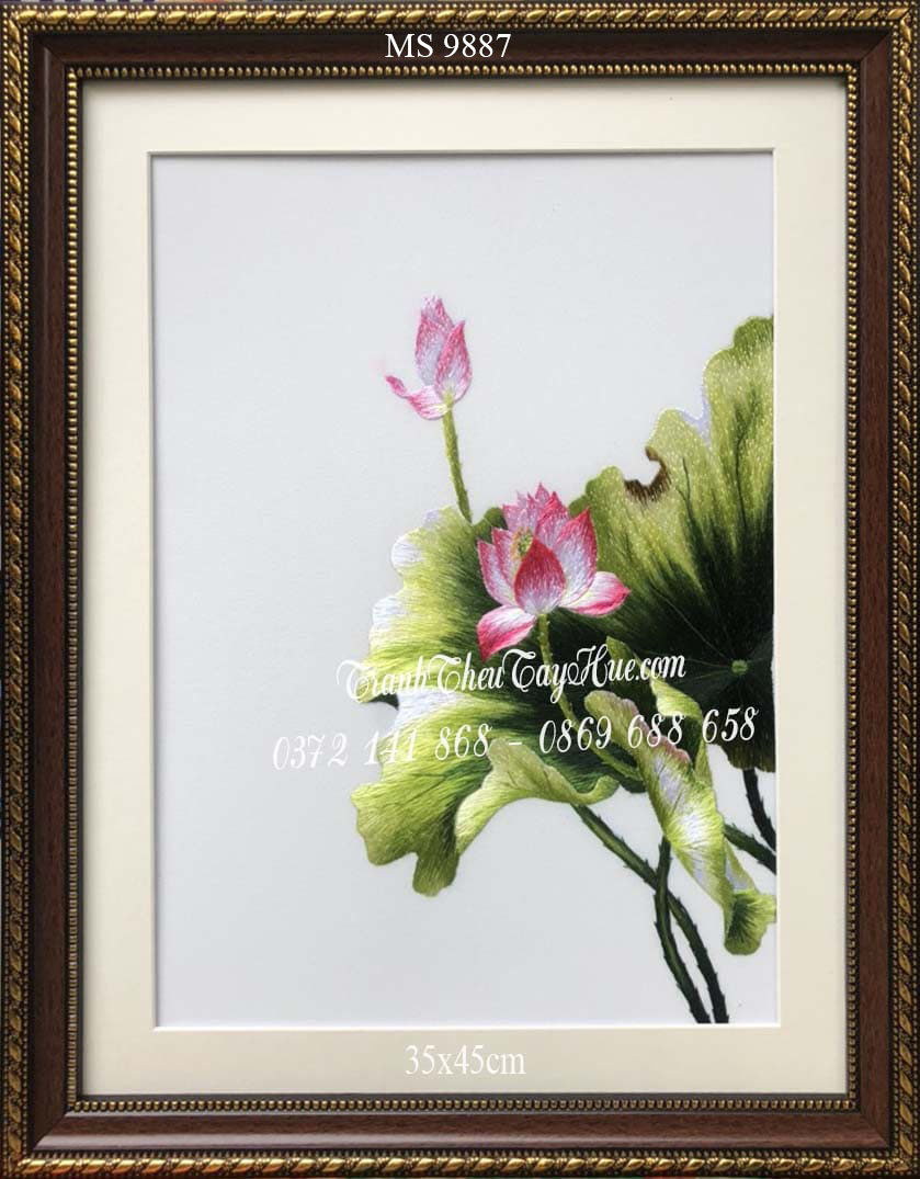 Tranh thêu hoa sen ms 9887