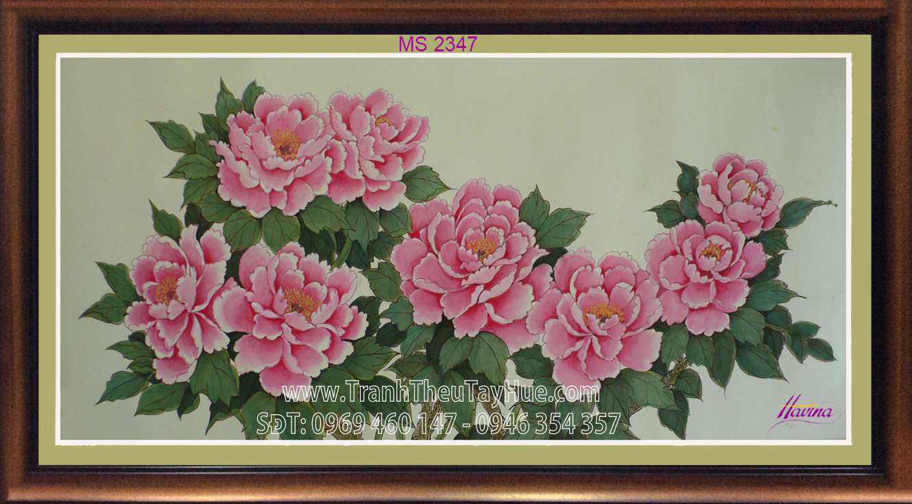 Tên tác phẩm: Tranh thêu hoa mẫu đơn 8 bông