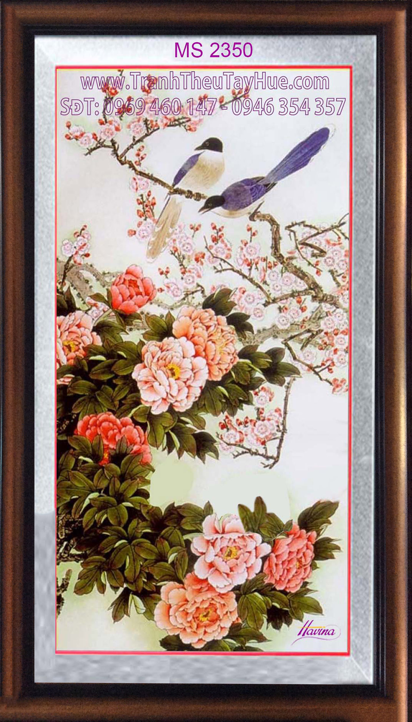 CHI TIẾT TÁC PHẨM TRANH THÊU HOA MẪU ĐƠN 8 BÔNG MS 2350: