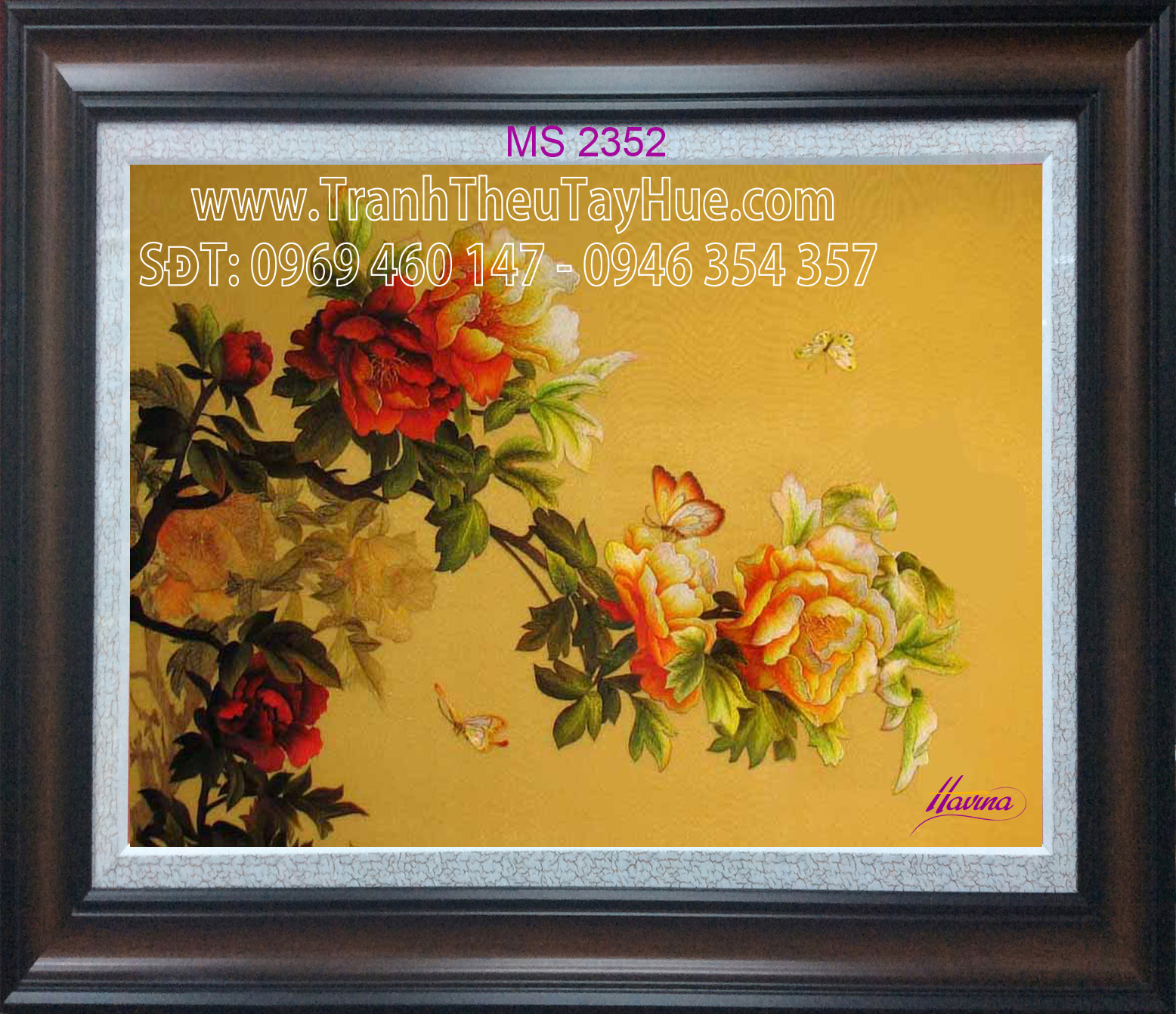 CHI TIẾT TÁC PHẨM TRANH THÊU HOA MẪU ĐƠN 8 BÔNG MS 2352: