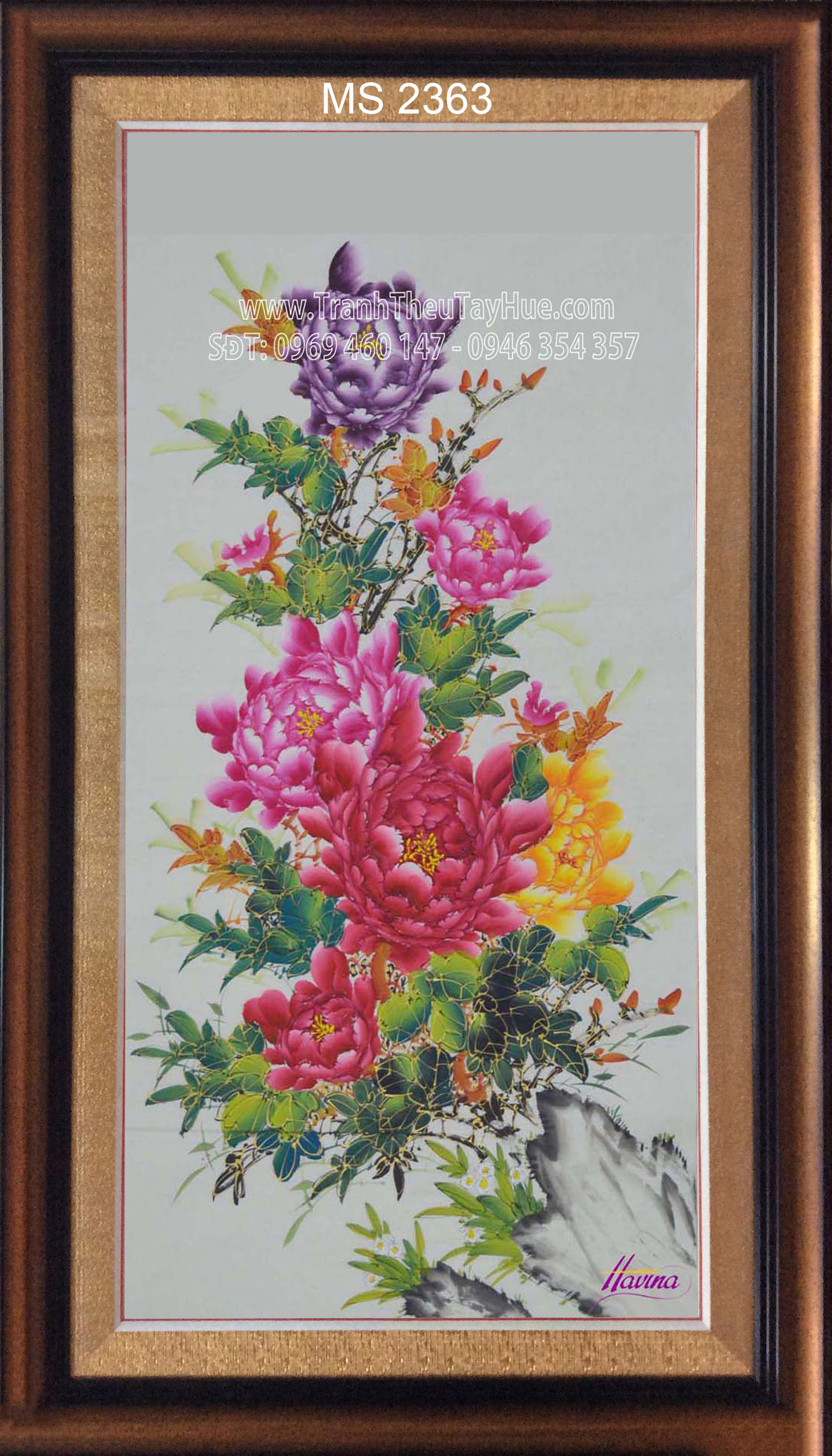 CHI TIẾT TÁC PHẨM TRANH THÊU HOA MẪU ĐƠN 8 BÔNG MS 2363: