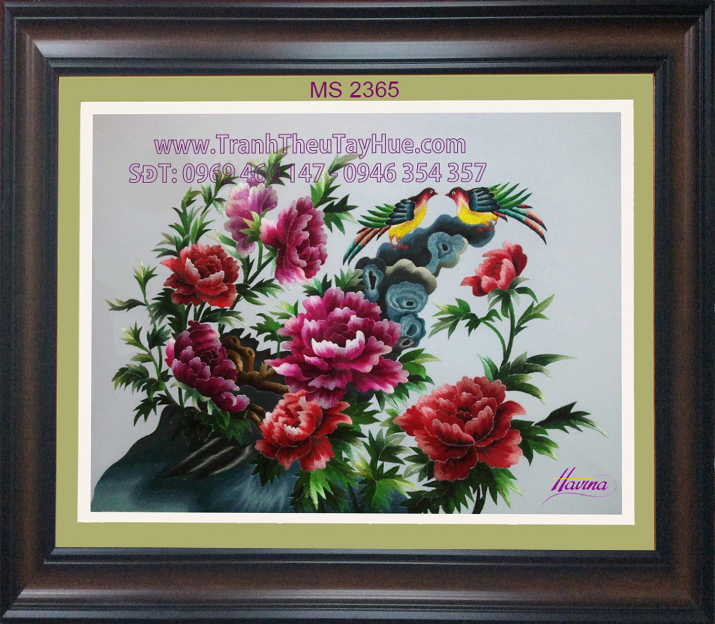 Tên tác phẩm: Tranh thêu hoa mẫu đơn 8 bông