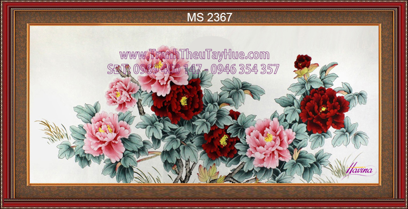 Tên tác phẩm: Tranh thêu hoa mẫu đơn 8 bông