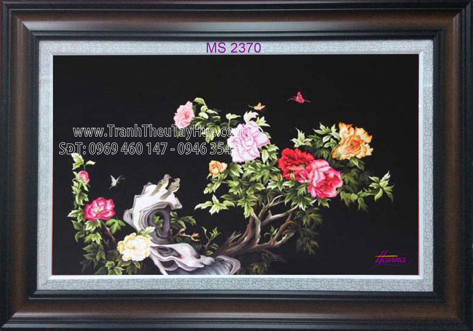 CHI TIẾT TÁC PHẨM TRANH THÊU HOA MẪU ĐƠN 8 BÔNG MS 2370: