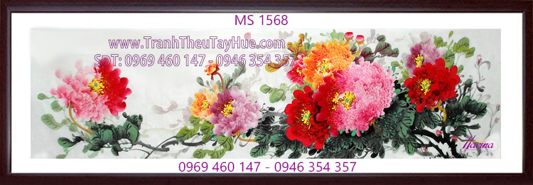 CHI TIẾT TÁC PHẨM TRANH THÊU HOA MẪU ĐƠN 9 BÔNG MS 1568: