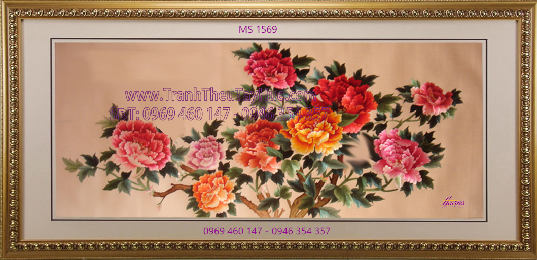 Tên tác phẩm: Tranh thêu hoa mẫu đơn 9 bông