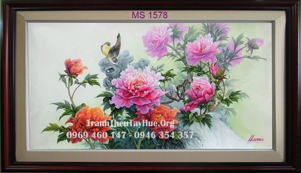 CHI TIẾT TÁC PHẨM TRANH THÊU HOA MẪU ĐƠN 9 BÔNG MS 1578: