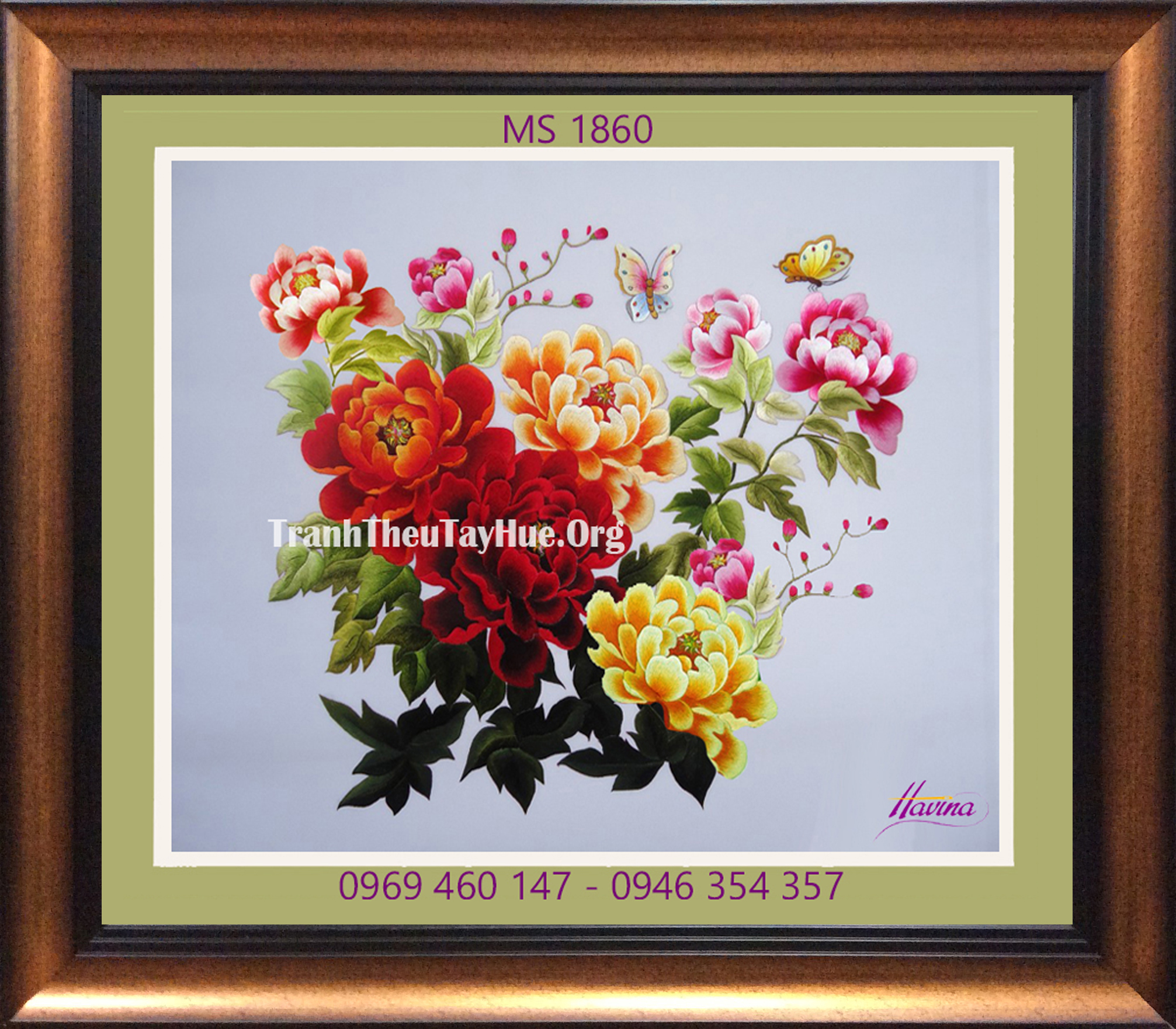 CHI TIẾT TÁC PHẨM TRANH THÊU HOA MẪU ĐƠN 9 BÔNG MS 1860