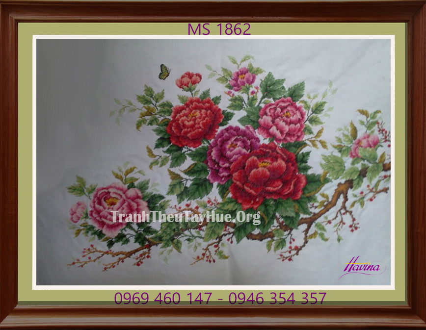 CHI TIẾT TÁC PHẨM TRANH THÊU HOA MẪU ĐƠN 9 BÔNG MS 1862