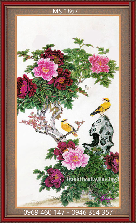 Tên tác phẩm: Tranh thêu hoa mẫu đơn