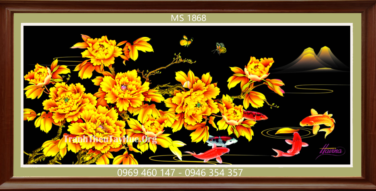CHI TIẾT TÁC PHẨM TRANH THÊU HOA MẪU ĐƠN 9 BÔNG MS 1868