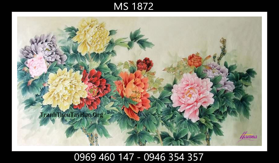 Tên tác phẩm: Tranh thêu hoa mẫu đơn