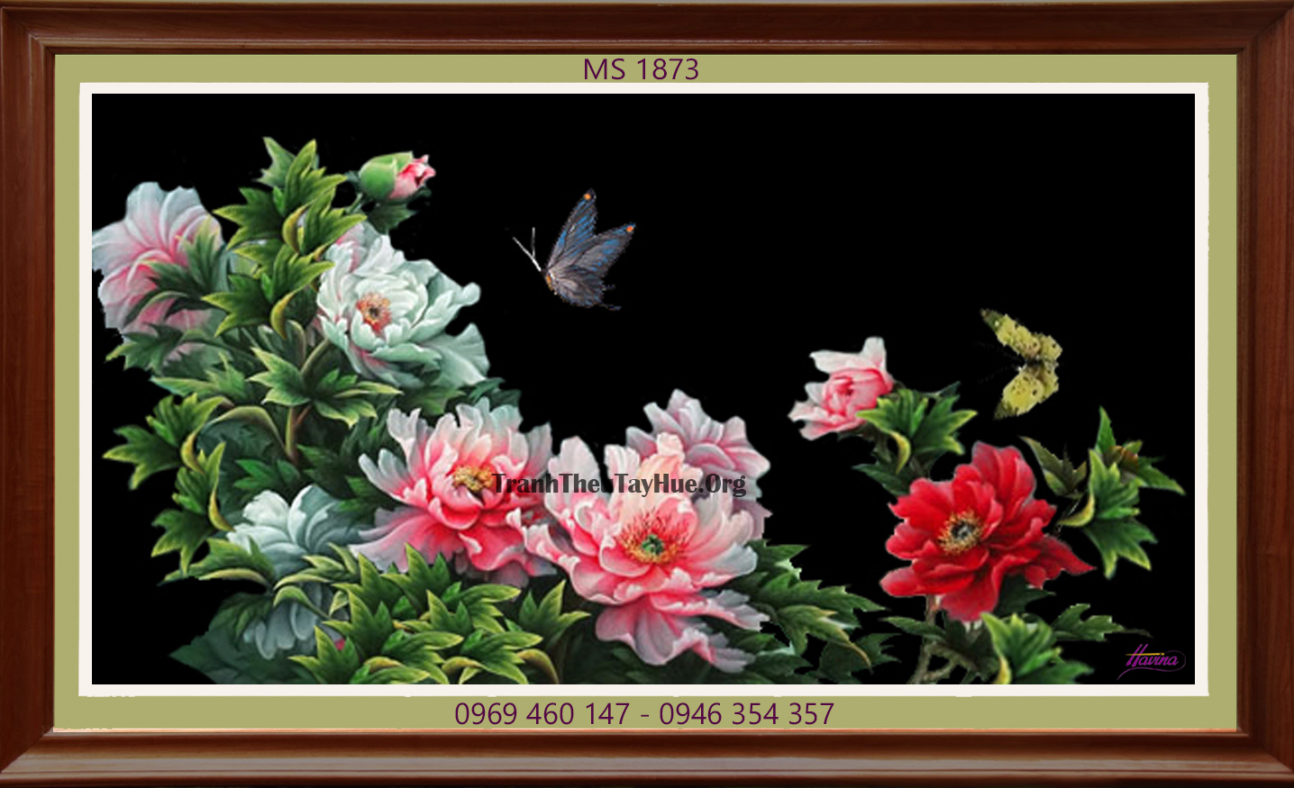CHI TIẾT TÁC PHẨM TRANH THÊU HOA MẪU ĐƠN 9 BÔNG MS 1873