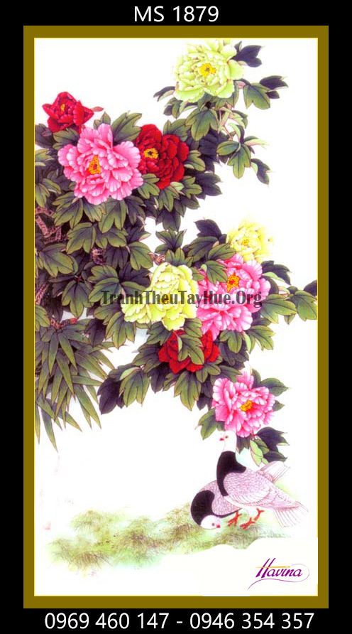 Tên tác phẩm: Tranh thêu hoa mẫu đơn