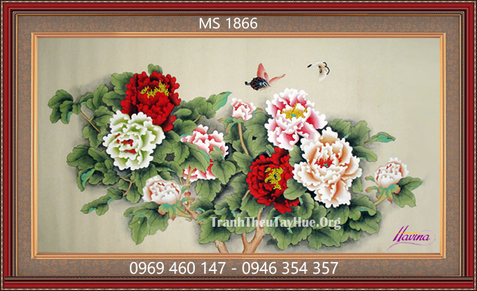 Tên tác phẩm: Tranh thêu hoa mẫu đơn