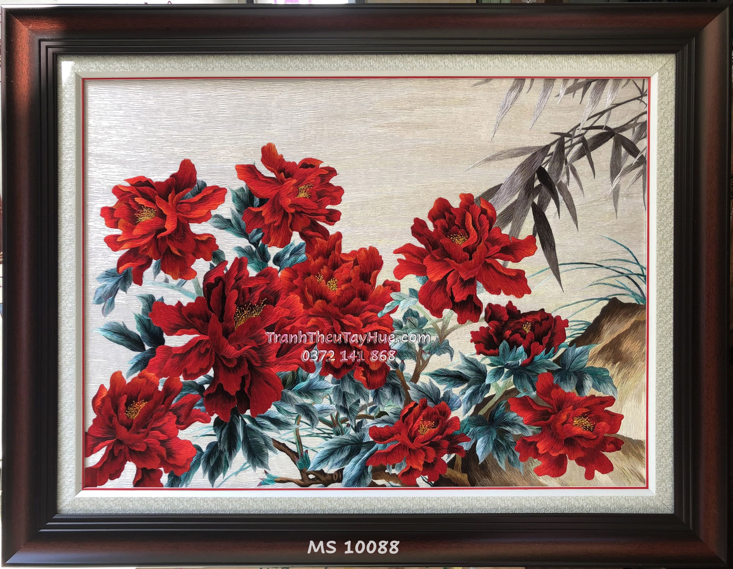Tên tác phẩm: Tranh thêu hoa mẫu đơn MS 10088