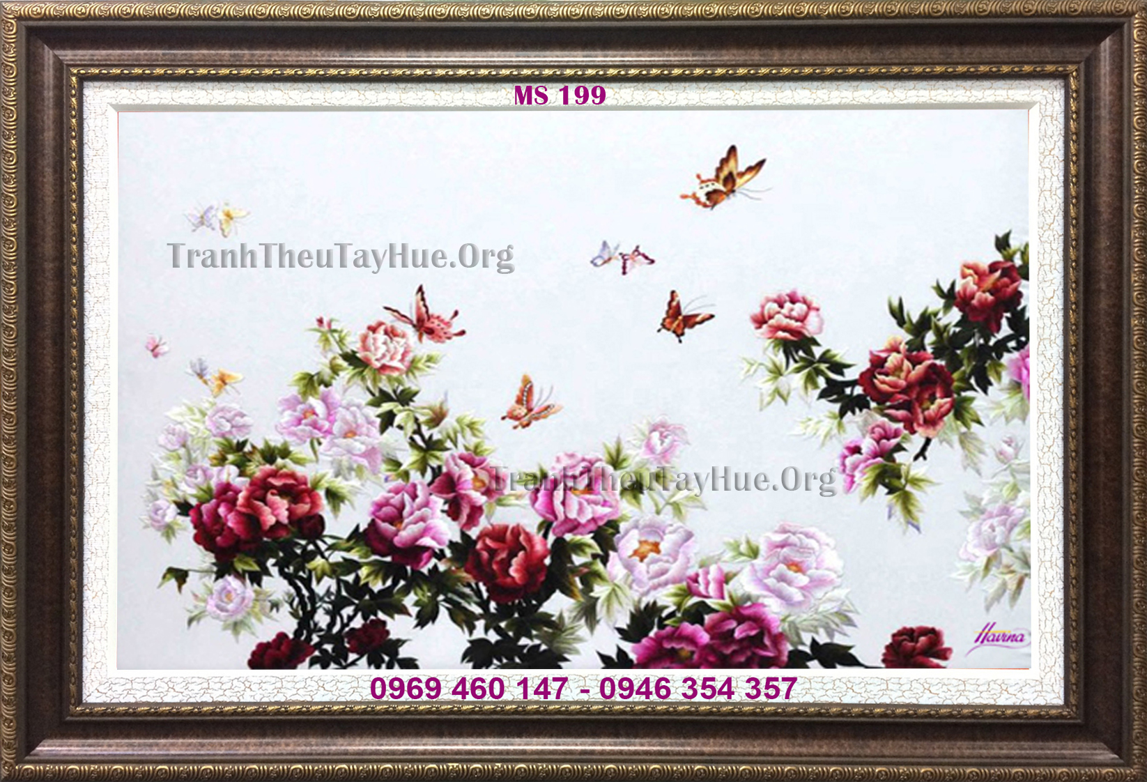 Tên tác phẩm: Tranh thêu hoa mẫu đơn MS 199