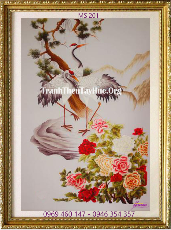 Tên tác phẩm: Tranh thêu hoa mẫu đơn MS 201