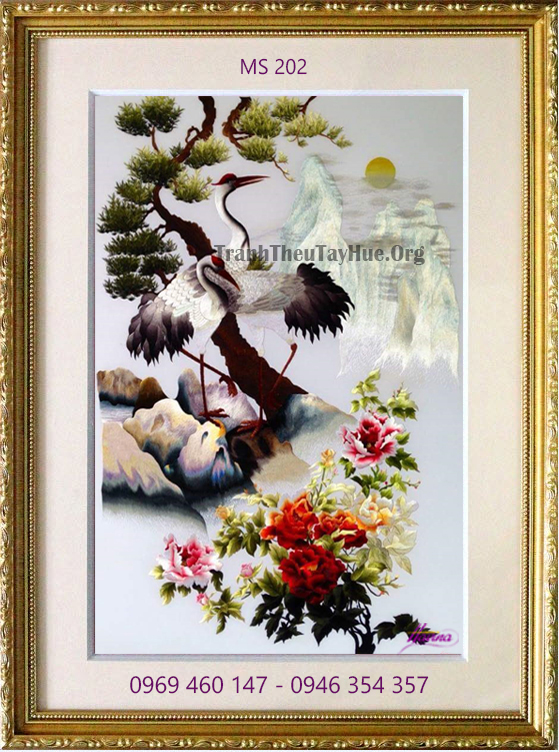 Tên tác phẩm: Tranh thêu hoa mẫu đơn MS 202