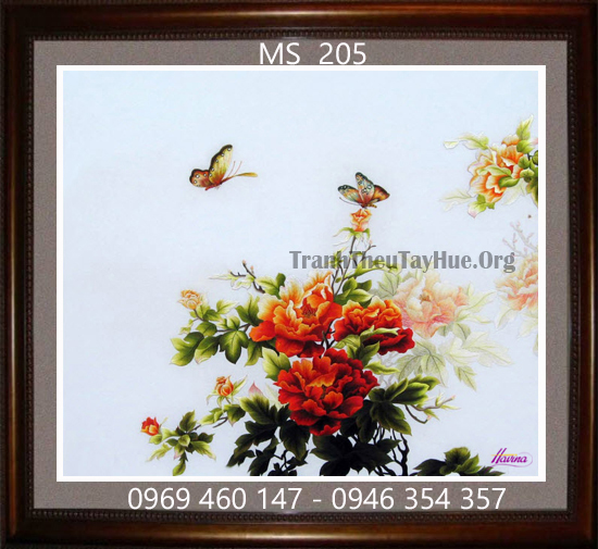 Tên tác phẩm: Tranh thêu hoa mẫu đơn MS 205