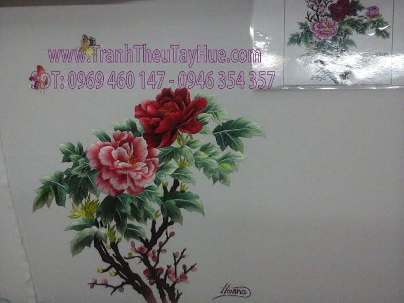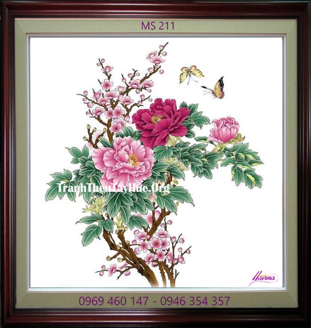 Tên tác phẩm: Tranh thêu hoa mẫu đơn MS 211