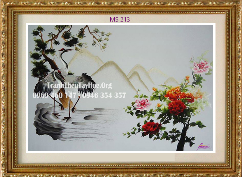 Tên tác phẩm: Tranh thêu hoa mẫu đơn MS 213