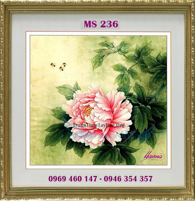 Tên tác phẩm: Tranh thêu hoa mẫu đơn MS 236