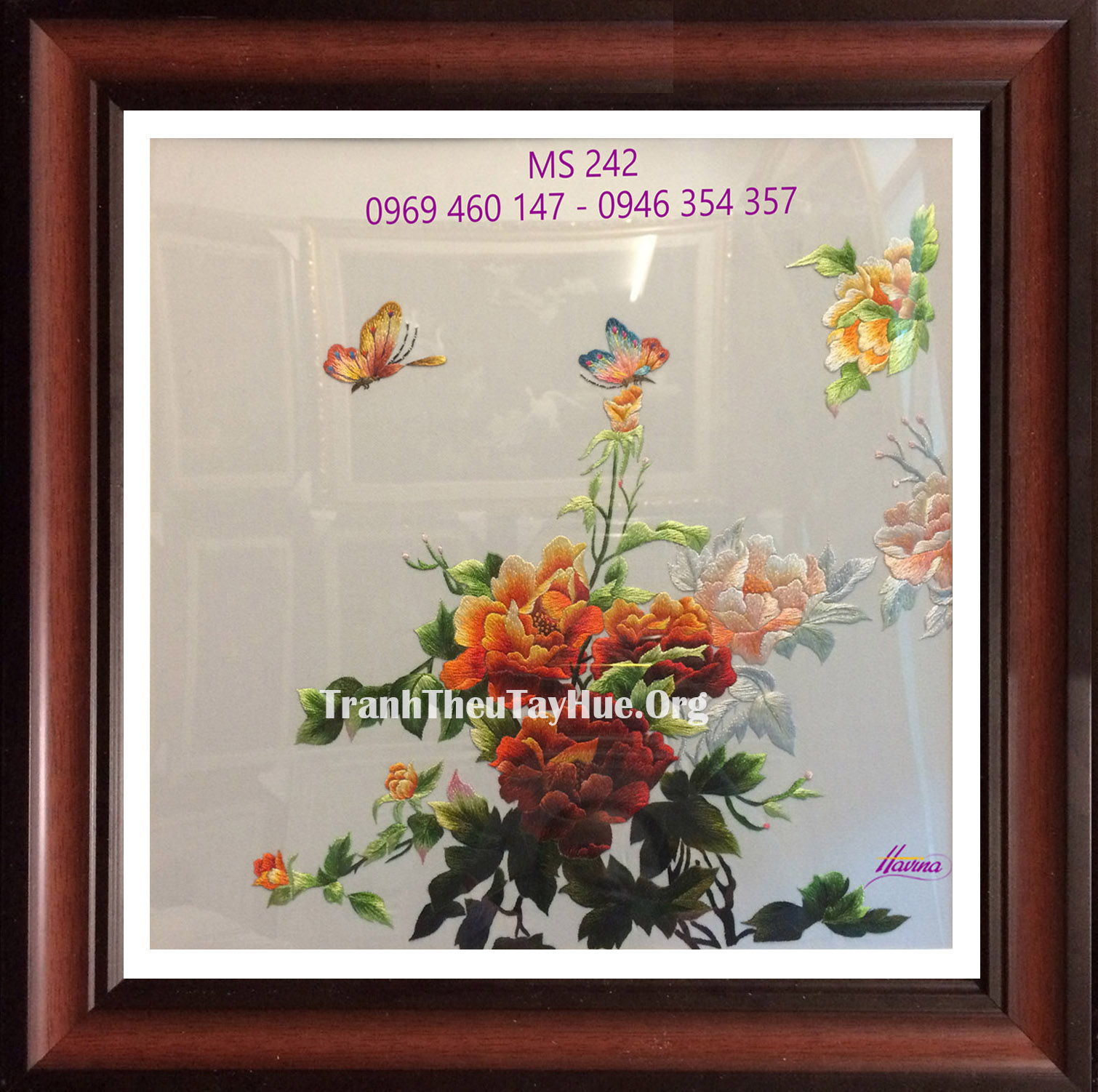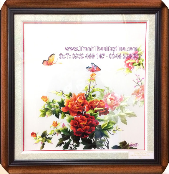 Tên tác phẩm: Tranh thêu hoa mẫu đơn MS 242