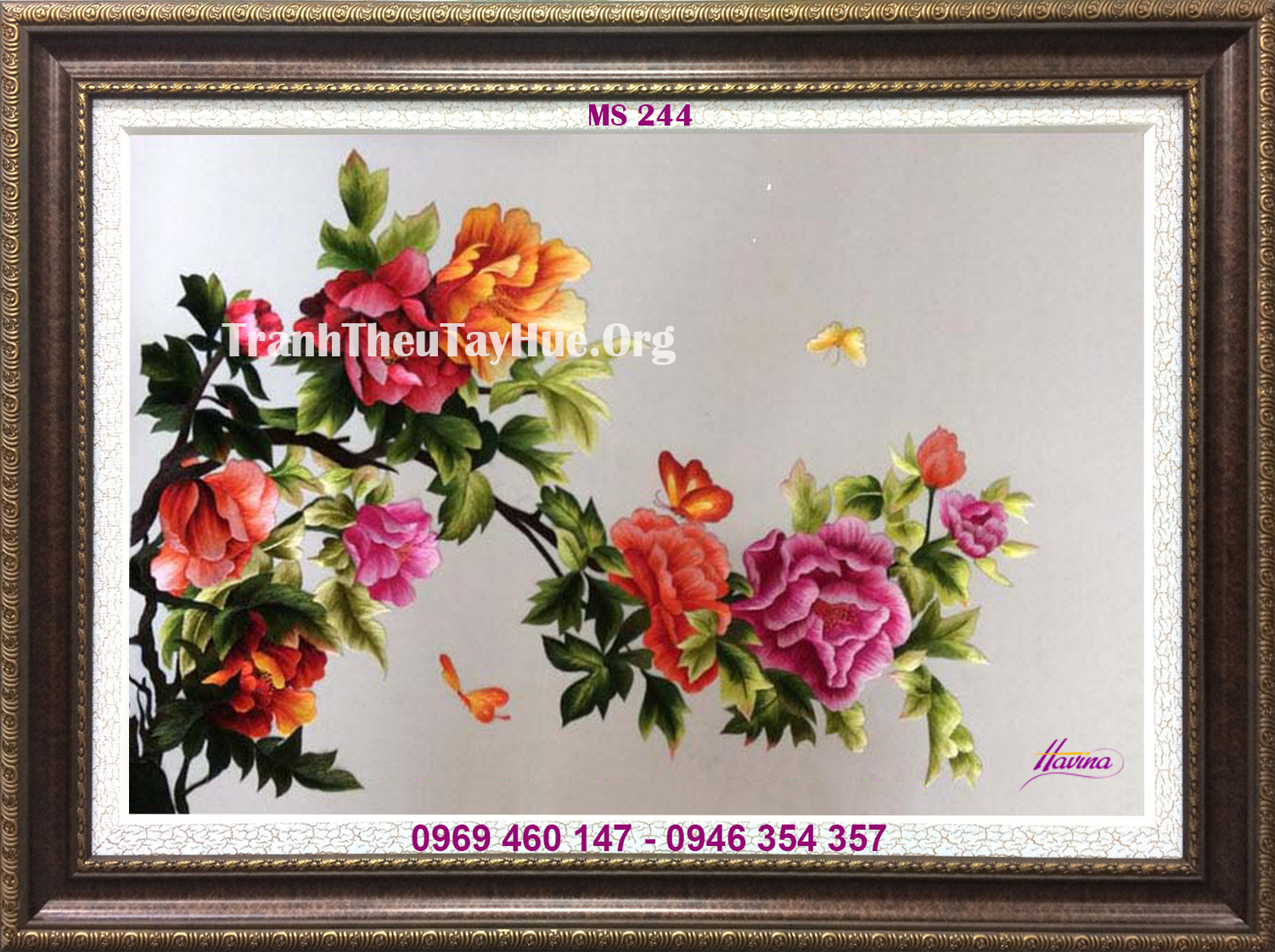 Tên tác phẩm: Tranh thêu hoa mẫu đơn MS 244