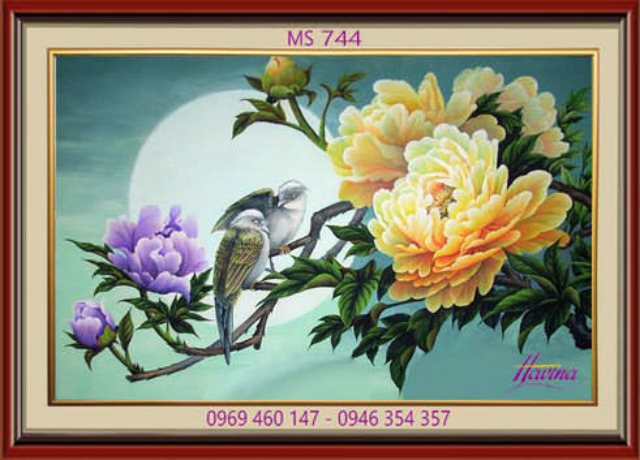 CHI TIẾT TÁC PHẨM TRANH THÊU HOA MẪU ĐƠN MS 744: