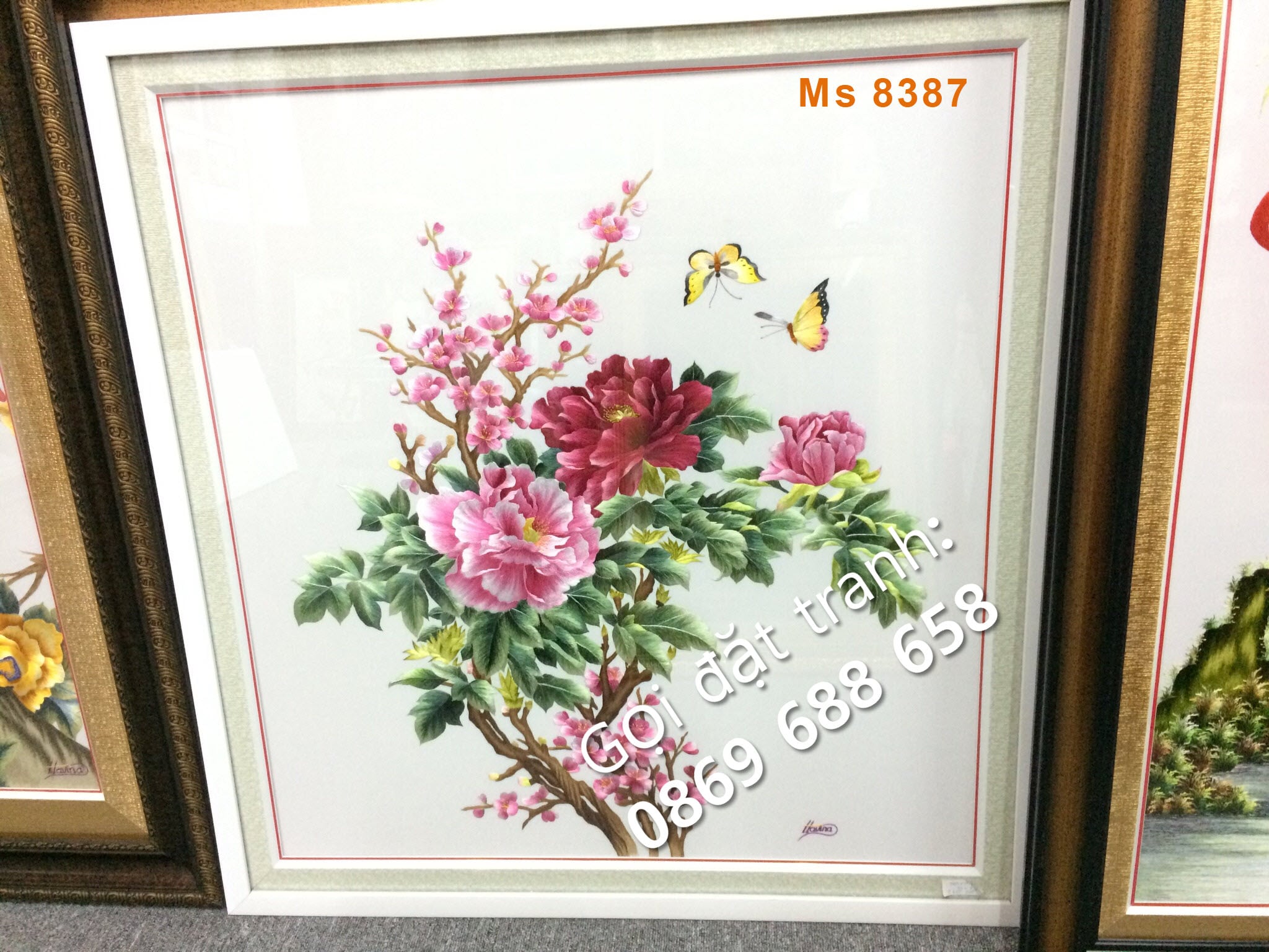 Tên tác phẩm: Tranh thêu hoa mẫu đơn MS 8387