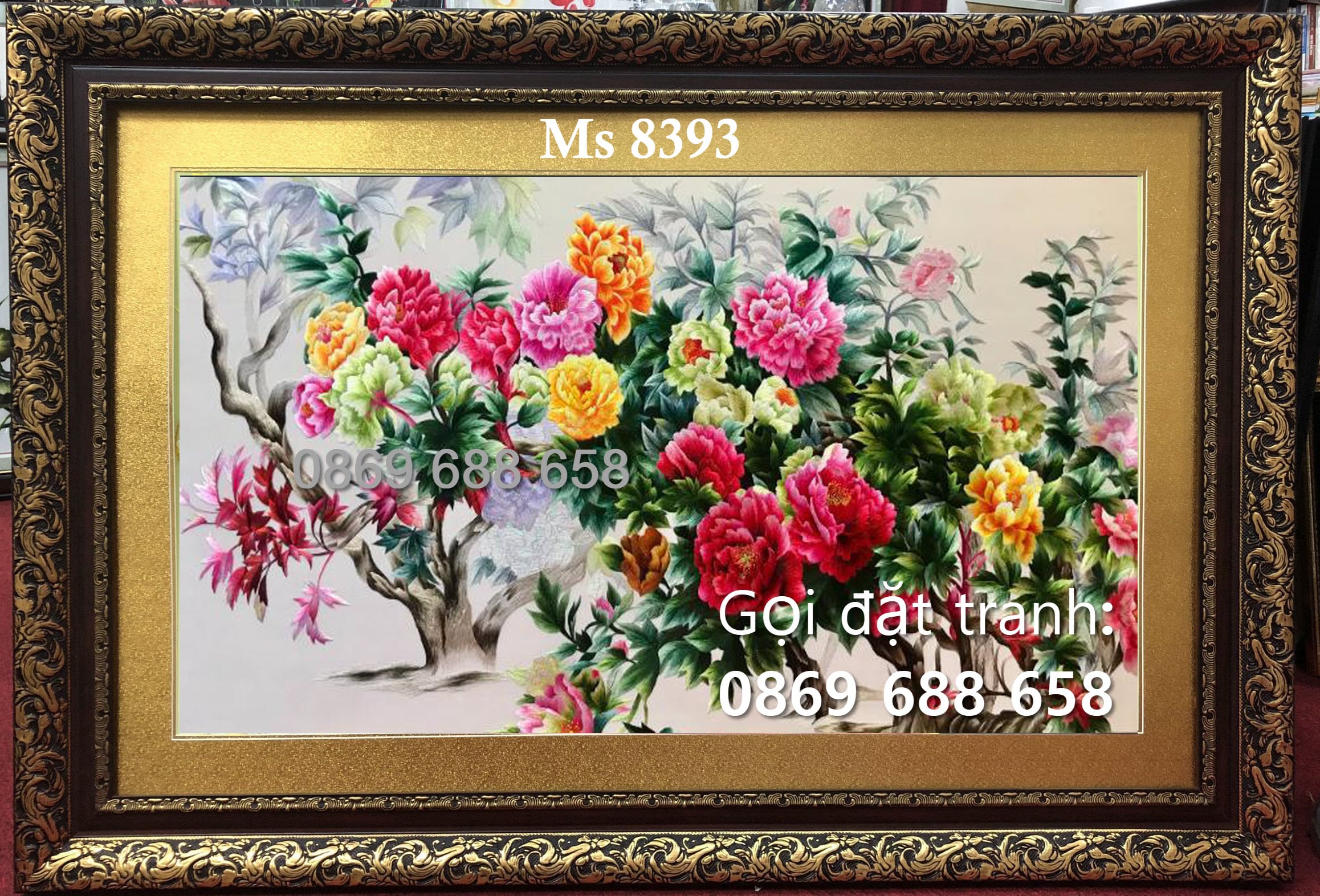 Tên tác phẩm: Tranh thêu hoa mẫu đơn MS 8393