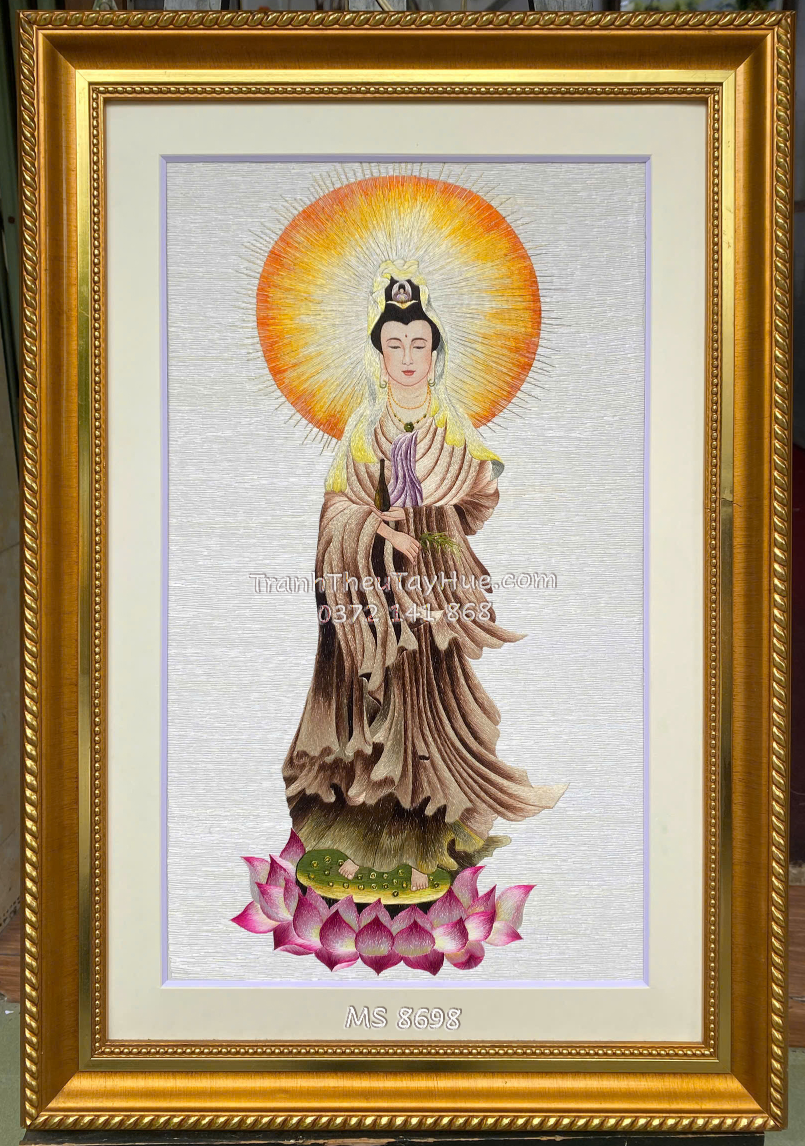 Tranh thêu truyền thống phật quan âm bồ tát là những tác phẩm tranh phật giáo tuyệt vời giúp bạn tránh dữ gặp lành. Tranh thêu truyền thống Quan âm cũng như những hình tượng khác của mẹ quan âm đều linh thiêng và sẵn sàng cứu độ, giúp chúng ta tai qua nạn khỏi. Tranh thêu phật quan âm bồ tác cũng là món quà linh thiêng quý giá để làm phước.