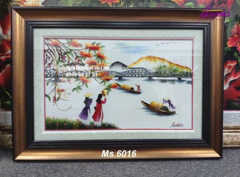 Tranh thêu tay tphcm MS 6016 - "Bên dòng sông Hương"