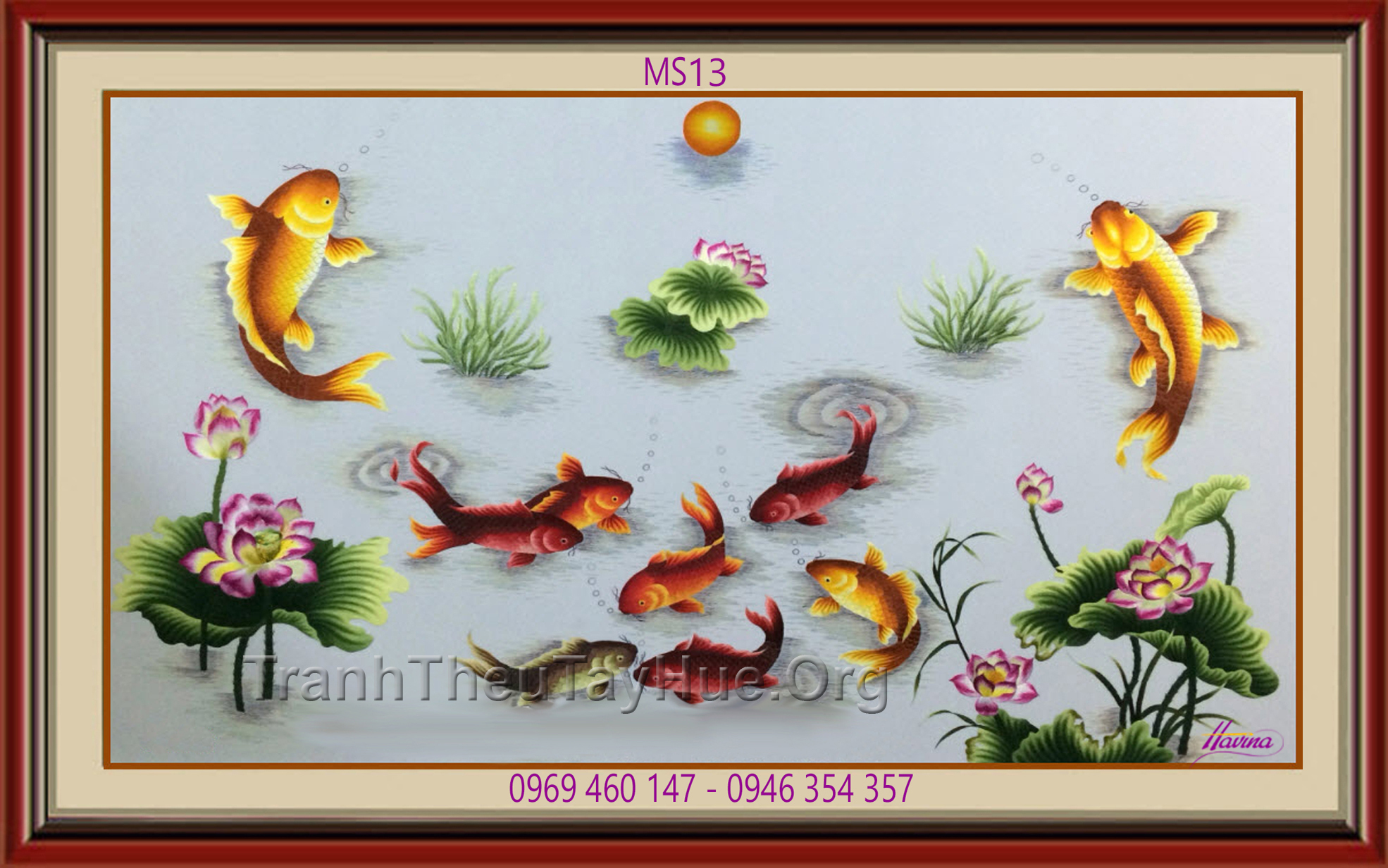 CHI TIẾT TÁC PHẨM TRANH THÊU CÁ CHÉP HOA SEN MS 13:
