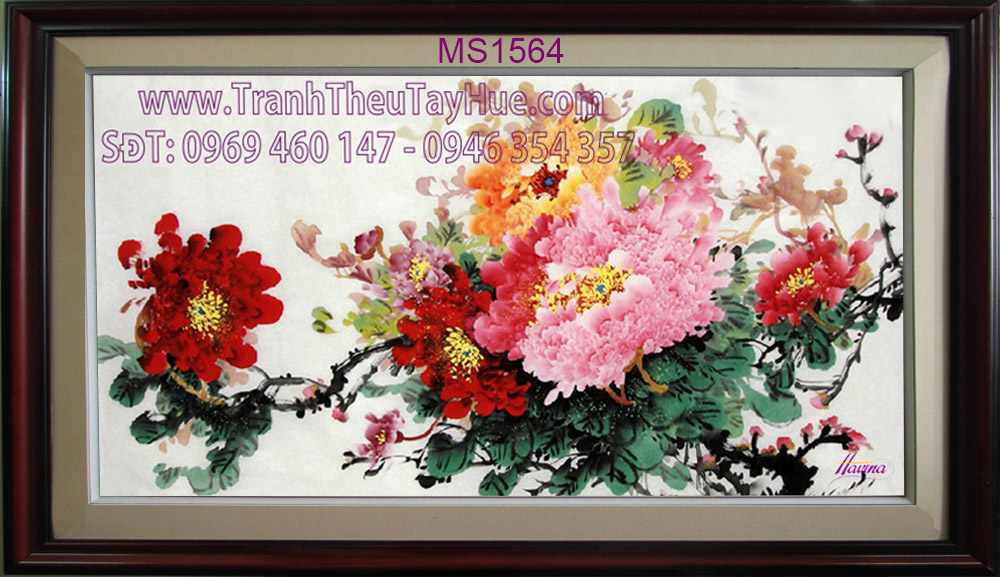 Tên tác phẩm: Tranh thêu hoa mẫu đơn 9 bông