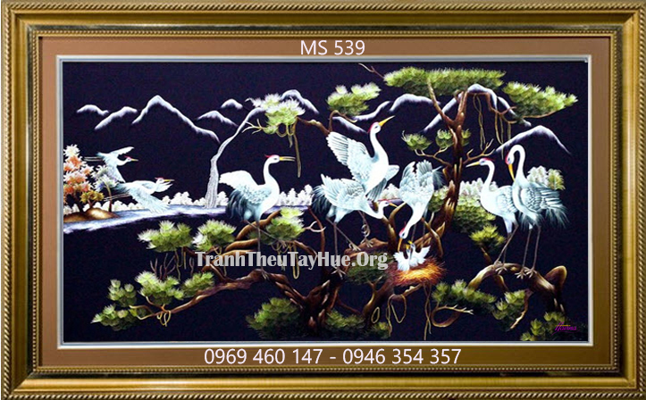 CHI TIẾT TÁC PHẨM TRANH THÊU TÙNG HẠC DIÊN NIÊN MS 539: