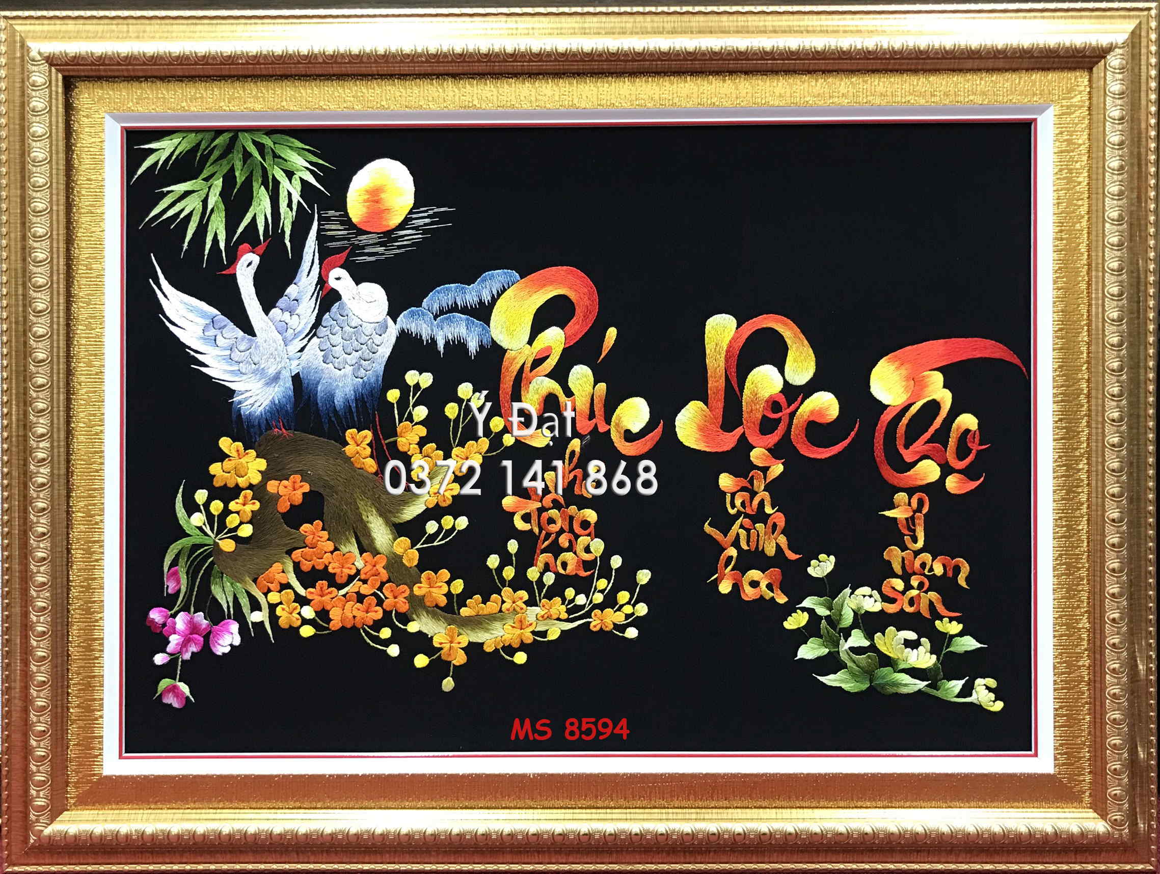 Tranh thêu chữ Phúc Lộc Thọ là ước nguyện tiêu biểu cho ba hạnh phúc lớn nhất của con người là Phúc là con cháu đầy đủ ngoan hiền. Lộc là tài lộc dồi dào, Thọ là sống lâu không bệnh tật và Phúc là đông con nhiều cháu hiếu thảo ngoan hiền. Bộ thư pháp chữ Phúc Lộc Thọ có nhiều cách thể hiện và có nhiều câu chúc kèm theo nhưng ý nghĩa của chúng vẫn xoay quanh mong ước “tham lam chính đáng” trên của con người.