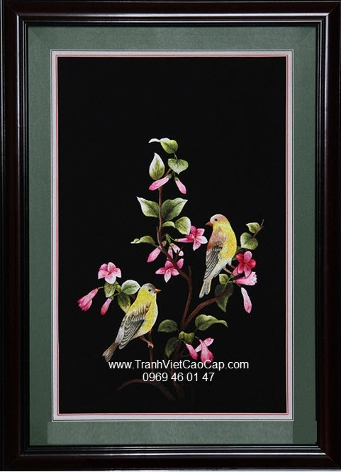Treo tranh thêu tay truyền thống Cung Đình xứ Huế với hình ảnh đôi chim trong nắng xuân sẽ giúp đàn ông và phụ nữ độc thân gặp được may mắn về tình duyên, vợ chồng hạnh phúc mãi mãi, gia đình luôn yêu thương gắn bó không chia lìa.
