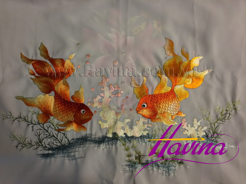 Nguyên liệu được sử dụng: Chỉ tơ kết hợp với chỉ DMC Pháp thêu trên vải lụa