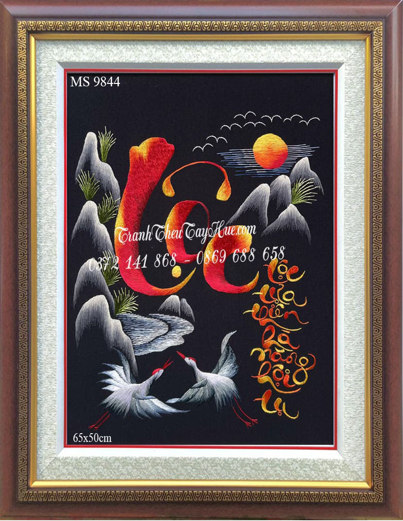 Tranh thêu tặng tân gia được thêu hoàn toàn bằng tay bởi những nghệ nhân tài hoa và dày dặn kinh nghiệm gốc Huế. Giao hàng tận nơi miễn phí. 098 982 27 23