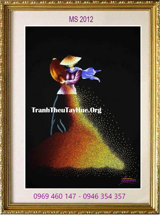 CHI TIẾT TÁC PHẨM TRANH THÊU PHONG CẢNH LÀNG QUÊ MS 2012