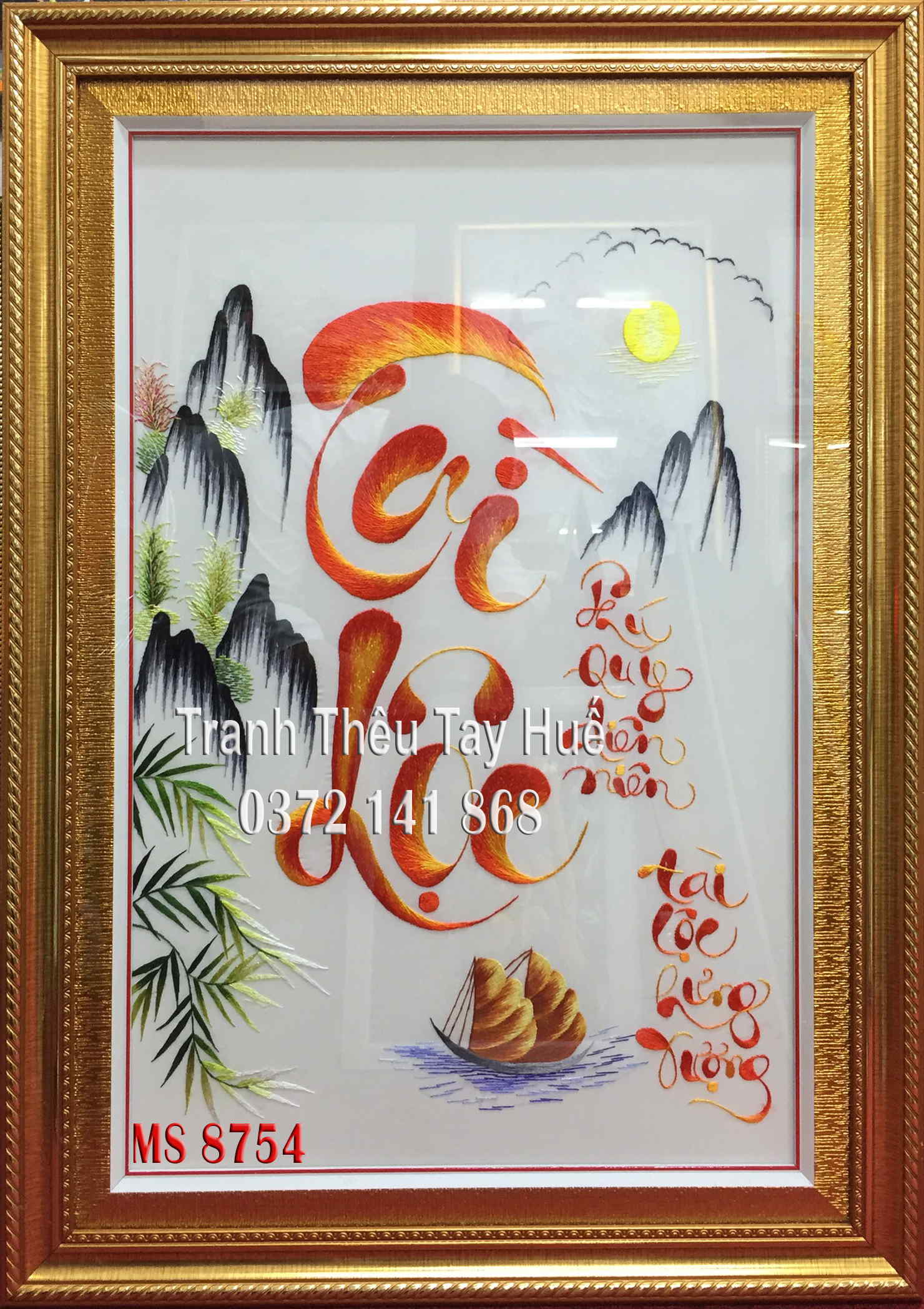 Tranh thêu tặng tân gia được thêu hoàn toàn bằng tay bởi những nghệ nhân tài hoa và dày dặn kinh nghiệm gốc Huế. Giao hàng tận nơi miễn phí. 098 982 27 23