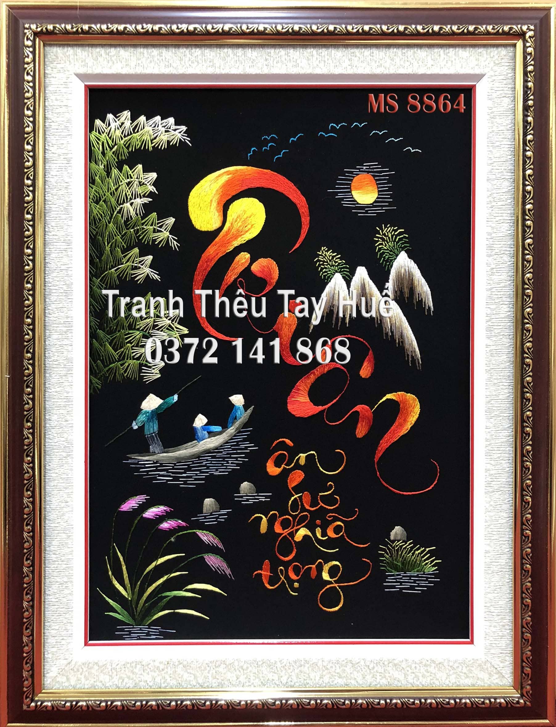 Tranh thư pháp tri ân MS 8864 - Thêu tay cao cấp Huế