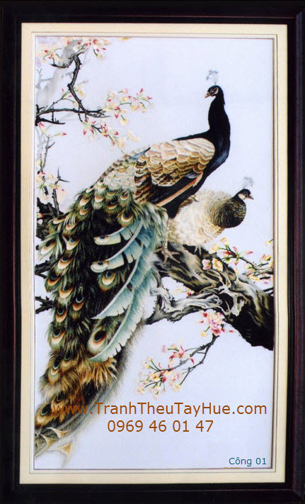 Tranh thêu con công là loại tranh thêu truyền thống được thêu hoàn toàn bằng tay bởi những thợ thêu dày dặn kinh nghiệm của đất Cố Đô Huế. Những bức tranh thêu con công là loại tranh thêu đặc sắc và cao cấp nhất trong các loại tranh thêu về các loài chim, nó thể hiện sự sang trọng, quý phái. Tranh thêu con công được coi là biểu tượng của tình yêu và sự giàu có.Tranh thêu con công giúp gắn kết các thành viên trong gia đình, xua đuổi đi luồng khí xấu mang lại luồng không khí tươi mới, thịnh vượng cho ngôi nhà hoặc văn phòng của bạn, ngoài ra tranh thêu con công được coi là biểu tượng cho sức mạnh của những cơ hội mới, đặc biệt khi bạn gặp vận hạn.