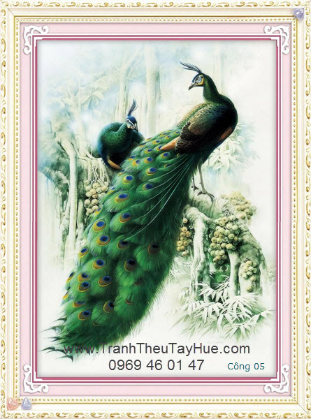 Tranh thêu con công là loại tranh thêu truyền thống được thêu hoàn toàn bằng tay bởi những thợ thêu dày dặn kinh nghiệm của đất Cố Đô Huế. Những bức tranh thêu con công là loại tranh thêu đặc sắc và cao cấp nhất trong các loại tranh thêu về các loài chim, nó thể hiện sự sang trọng, quý phái. Tranh thêu con công được coi là biểu tượng của tình yêu và sự giàu có.Tranh thêu con công giúp gắn kết các thành viên trong gia đình, xua đuổi đi luồng khí xấu mang lại luồng không khí tươi mới, thịnh vượng cho ngôi nhà hoặc văn phòng của bạn, ngoài ra tranh thêu con công được coi là biểu tượng cho sức mạnh của những cơ hội mới, đặc biệt khi bạn gặp vận hạn.