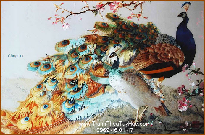 Tranh thêu con công là loại tranh thêu truyền thống được thêu hoàn toàn bằng tay bởi những thợ thêu dày dặn kinh nghiệm của đất Cố Đô Huế. Những bức tranh thêu con công là loại tranh thêu đặc sắc và cao cấp nhất trong các loại tranh thêu về các loài chim, nó thể hiện sự sang trọng, quý phái. Tranh thêu con công được coi là biểu tượng của tình yêu và sự giàu có.Tranh thêu con công giúp gắn kết các thành viên trong gia đình, xua đuổi đi luồng khí xấu mang lại luồng không khí tươi mới, thịnh vượng cho ngôi nhà hoặc văn phòng của bạn, ngoài ra tranh thêu con công được coi là biểu tượng cho sức mạnh của những cơ hội mới, đặc biệt khi bạn gặp vận hạn.