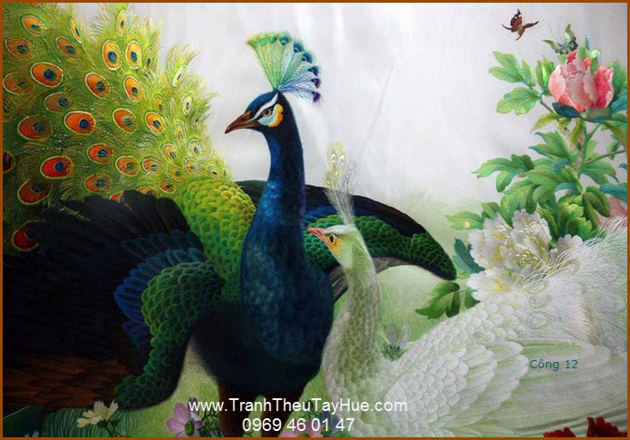 Tranh thêu con công là loại tranh thêu truyền thống được thêu hoàn toàn bằng tay bởi những thợ thêu dày dặn kinh nghiệm của đất Cố Đô Huế. Những bức tranh thêu con công là loại tranh thêu đặc sắc và cao cấp nhất trong các loại tranh thêu về các loài chim, nó thể hiện sự sang trọng, quý phái. Tranh thêu con công được coi là biểu tượng của tình yêu và sự giàu có.Tranh thêu con công giúp gắn kết các thành viên trong gia đình, xua đuổi đi luồng khí xấu mang lại luồng không khí tươi mới, thịnh vượng cho ngôi nhà hoặc văn phòng của bạn, ngoài ra tranh thêu con công được coi là biểu tượng cho sức mạnh của những cơ hội mới, đặc biệt khi bạn gặp vận hạn.