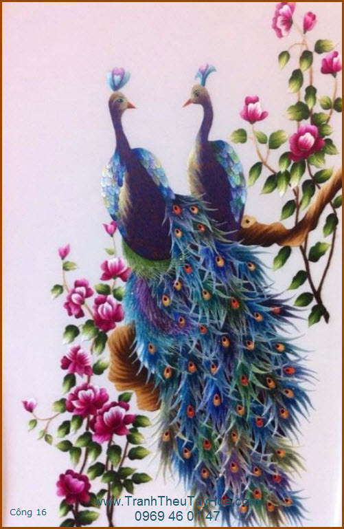 Tranh thêu con công là loại tranh thêu truyền thống được thêu hoàn toàn bằng tay bởi những thợ thêu dày dặn kinh nghiệm của đất Cố Đô Huế. Những bức tranh thêu con công là loại tranh thêu đặc sắc và cao cấp nhất trong các loại tranh thêu về các loài chim, nó thể hiện sự sang trọng, quý phái. Tranh thêu con công được coi là biểu tượng của tình yêu và sự giàu có.Tranh thêu con công giúp gắn kết các thành viên trong gia đình, xua đuổi đi luồng khí xấu mang lại luồng không khí tươi mới, thịnh vượng cho ngôi nhà hoặc văn phòng của bạn, ngoài ra tranh thêu con công được coi là biểu tượng cho sức mạnh của những cơ hội mới, đặc biệt khi bạn gặp vận hạn.